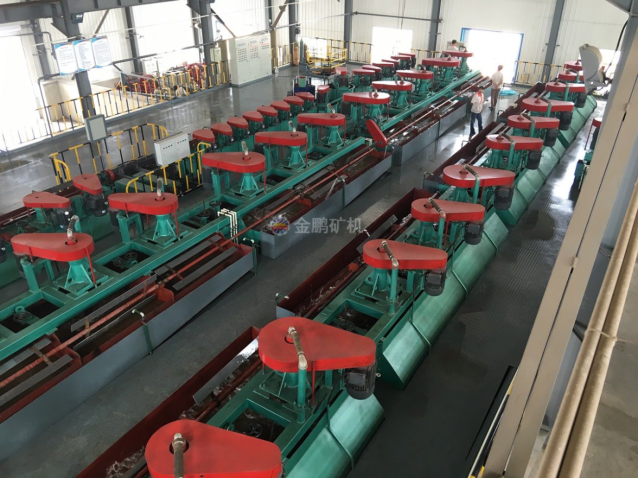 銅鉛混浮采用一粗三掃四精的浮選工藝流程,粗掃選采用充氣式浮選機,精選采用自吸式浮選機。