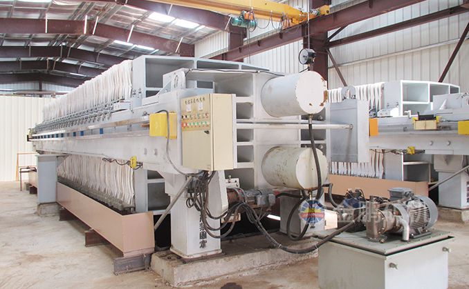 浸出槽尾礦經(jīng)緩沖槽由泵輸送到全自動(dòng)廂式壓濾機(jī),壓濾后的水流入循環(huán)水池以備循環(huán)利用,濾餅經(jīng)帶運(yùn)輸機(jī)運(yùn)到尾礦堆場(chǎng),卡車將尾礦運(yùn)到尾礦庫(kù)。