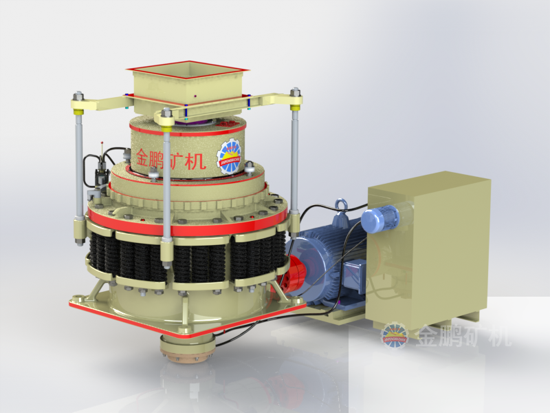 圓錐破碎機其結構主要有機架、水平軸、動錐體、平衡輪、偏心套、上破碎壁(固定錐)、下破碎壁(動錐)、液力偶合器、潤滑系統(tǒng)、液壓系統(tǒng)、控制系統(tǒng)等幾部分組成。