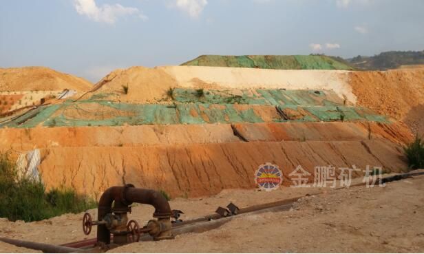 2、噴淋系統:在鋪設好的礦堆上,設置噴淋系統。氰化溶液與礦堆反應后,從礦堆底部滲出含金溶液(貴液),流入貴液池,經貴液泵打入吸附柱,活性炭吸附后的溶液為貧液,貧液返回噴淋系統再利用。